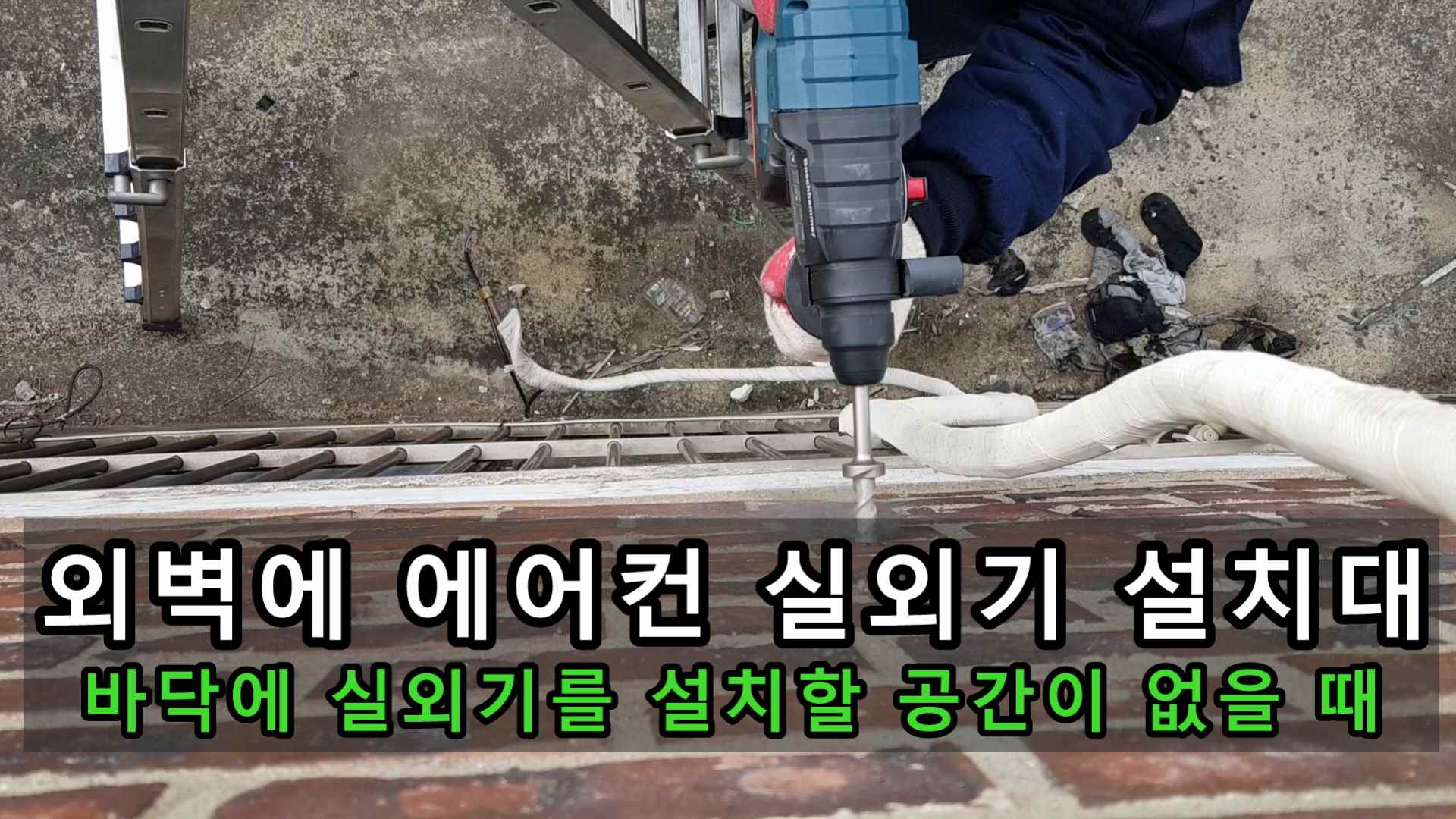 설치대를 내려놓고 표시해둔 곳을 함마 드릴을 이용해서 타공을 합니다.